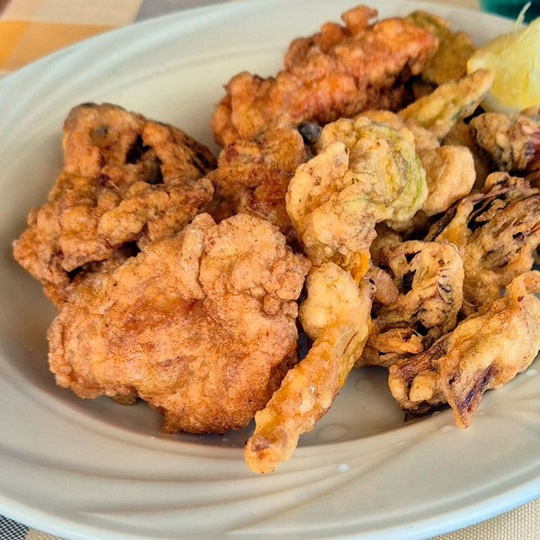 Serviamo svariati antipasti e spuntini della tradizione tipica come taglieri di salumi e formaggi, panzerotti fritti, crostini toscani, insalate e caprese